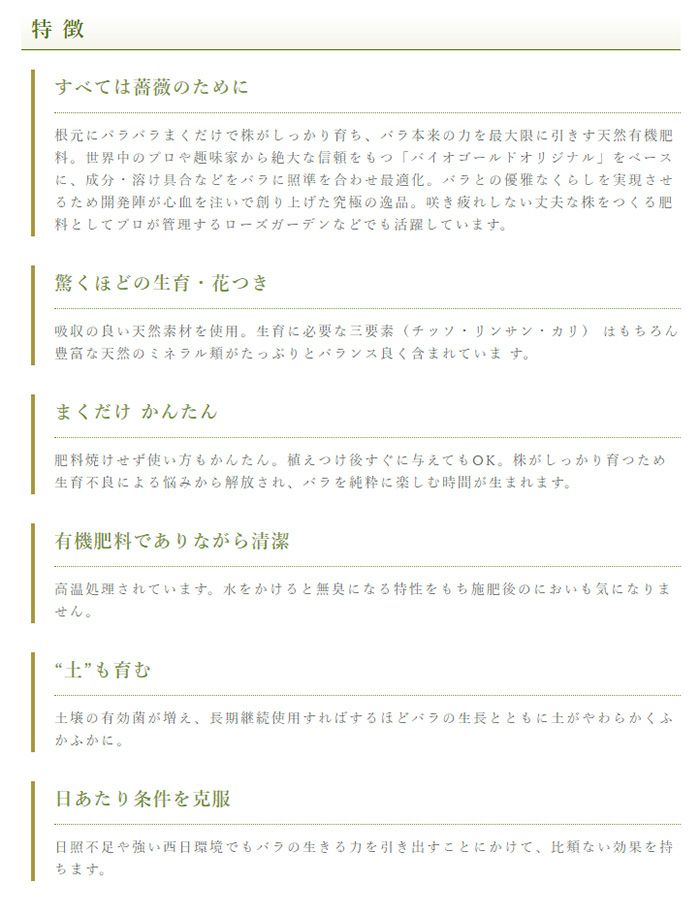 他の画像を見る メーカー直送 送料無料 ローズフェスタ対象品 送料無料でお得!! 【11月末迄ポイント10倍】バイオゴールドオリジナル5kg×4袋 販売価格 ¥ 26,400 税込 カートに入れる お気に入りに登録する