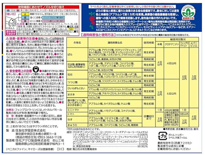 他の画像を見る これ1本で殺虫・殺菌が出来る 【殺虫剤 殺菌剤】アタックワンAL(fortheROSE)1000mLエムシー緑化園芸資材 販売価格 ¥ 1,430 税込 カートに入れる お気に入りに登録する