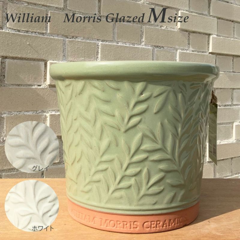 ウィリアムモリスの美しいデザインが施された塗りのテラコッタ製の鉢です。