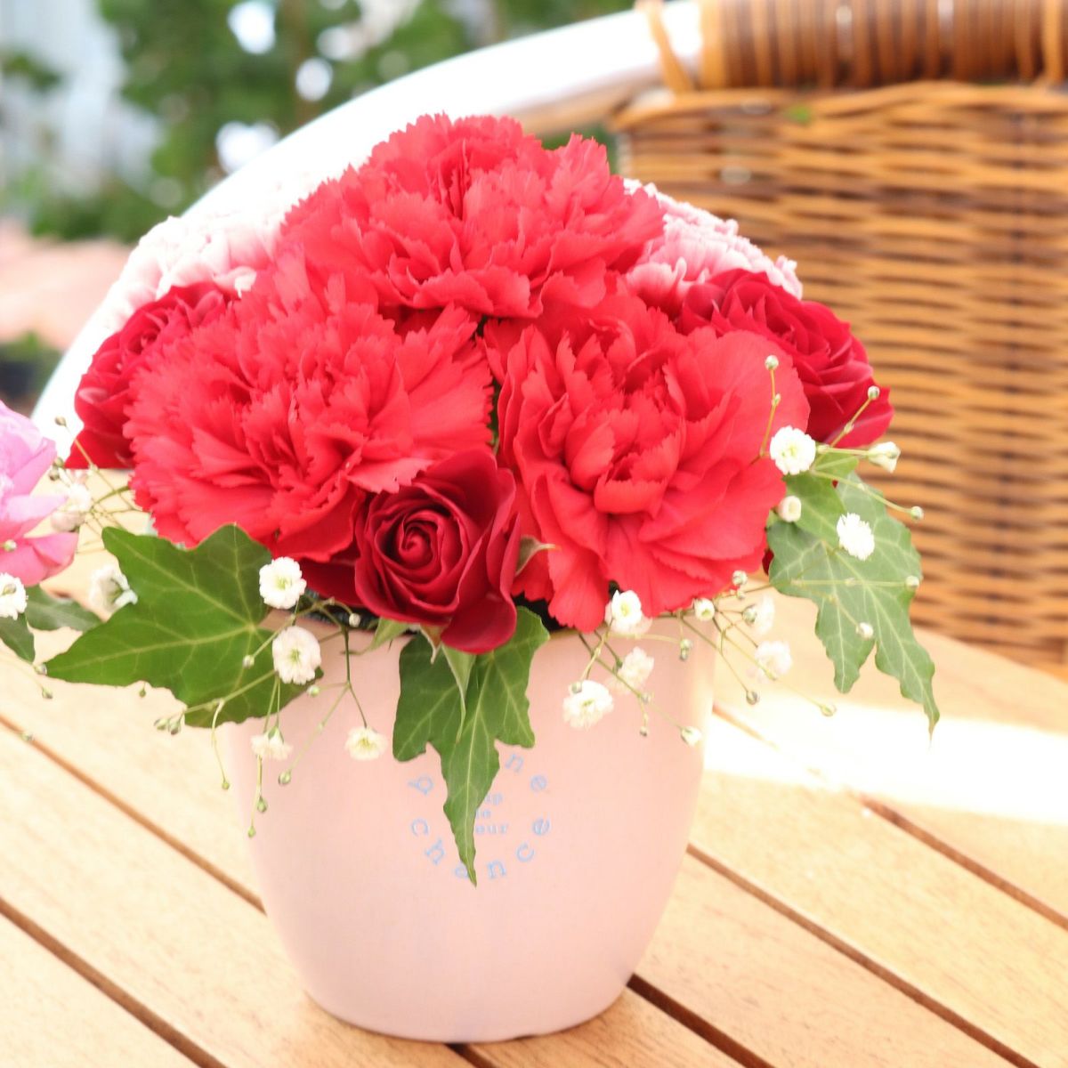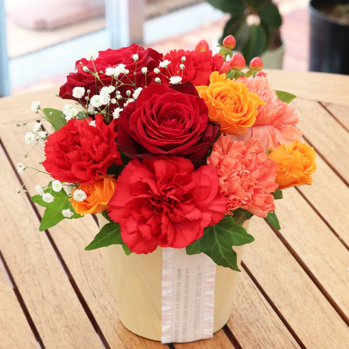 カーネーションとバラを組み合わせたオリジナルのアレンジメントやブーケをはじめ、 バラの京阪園芸ならではのギフトを盛だくさんご用意しています。