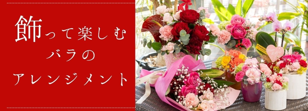 アレンジメントやブーケ、鉢花に加え、 オンラインショップ限定の本格的なバラの鉢植えギフトもご用意。
