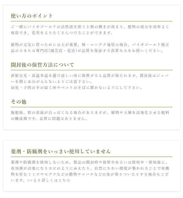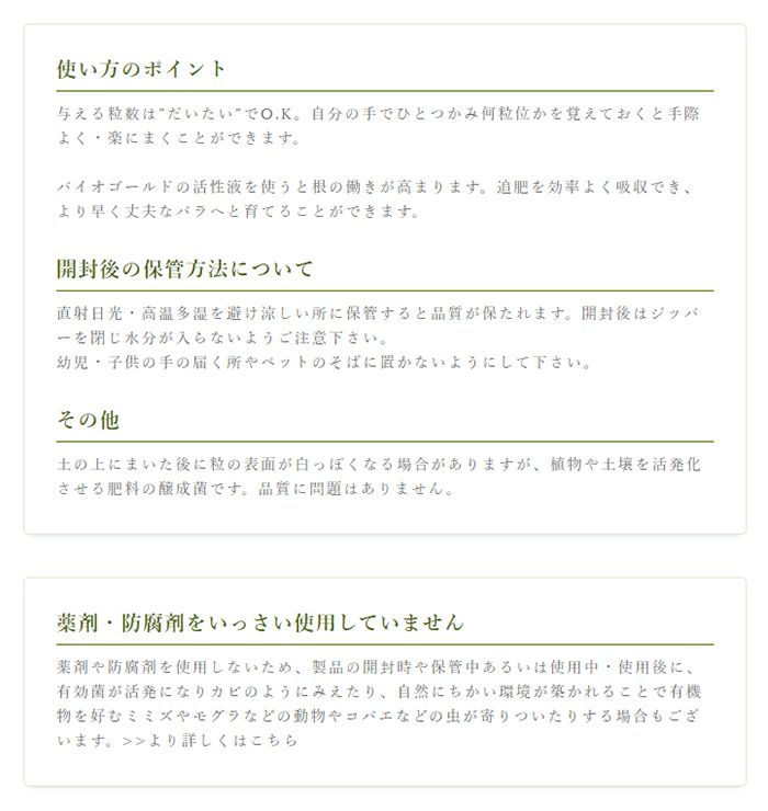 他の画像を見る メーカー直送 送料無料 ローズフェスタ対象品 送料無料でお得!! 【11月末迄ポイント10倍】バイオゴールドオリジナル5kg×4袋 販売価格 ¥ 26,400 税込 カートに入れる お気に入りに登録する