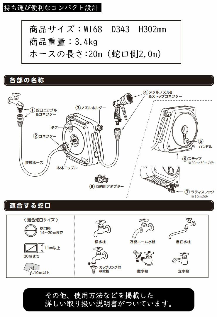 他の画像を見る メーカー直送 ローズフェスタ対象品 2年保証付きの安心感。 【11月末迄送料無料】コンパクトガーデンリールⅡ20m 販売価格 ¥ 15,400 税込 カートに入れる お気に入りに登録する