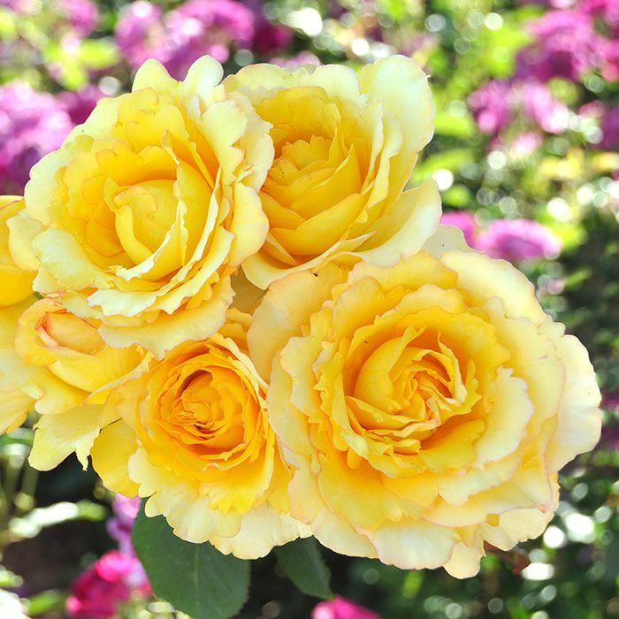 フリルとシャーリングの入った花弁の大輪種で、花色は、非常に鮮やかなビタミンイエローで時折花弁の縁にオレンジ色がさす。半直立性で鉢栽培にも適しています。