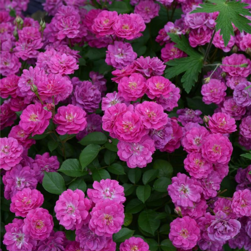 鮮やかでシックな赤紫の小さな花を沢山咲かせ、良く繰り返し咲くナチュラルな雰囲気のバラ。