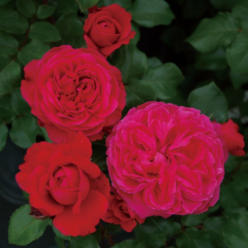 クリムゾンレッドの花色とカップ咲きの花形がシックな雰囲気のバラです。花色は咲き進むにつれてピンクを帯びてきます。濃緑の照り葉が美しい品種です。耐寒・耐病性があり、修景バラのように扱うことができます。また、枝がシュラブ状によく伸びるため低いフェンスで仕立てることができます。2005年ADR認証。