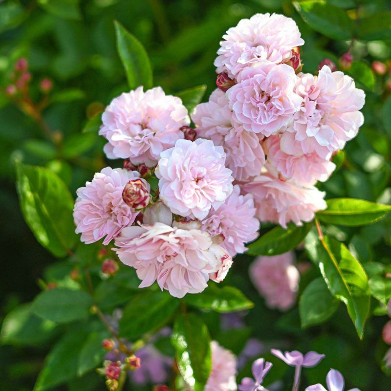 春は淡いさくらピンク~白色の可愛らしい小輪の花が房でたくさん咲く。 そして夏はグリーンがかる白や淡いピンクの花が咲き、特徴的な花形へと変化する。 夏のツボミがまるで砂糖菓子の‘金平糖’のようなので命名。 甘く優しい香り。コンパクトで良く繰り返し咲く草花のように使えるバラ。