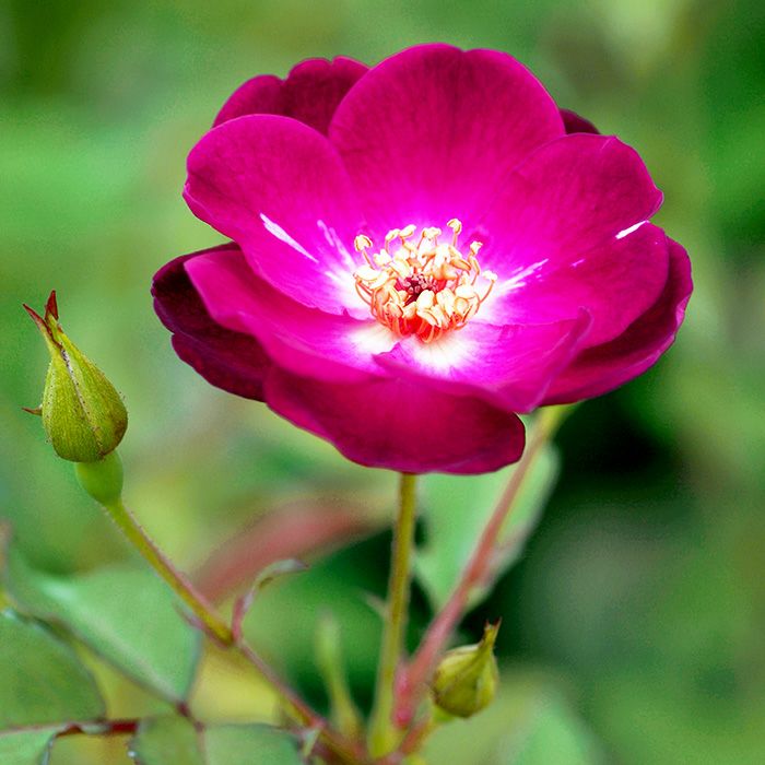 江戸時代中期から続く旧家の庭で 発見されたチャイナローズ。名前 は仮名。赤色から紫赤色の花径5cmほどの花で、病気に強く、丈夫 に育ちながらもコンパクトに生育 します。「Purpurea」に酷似する。