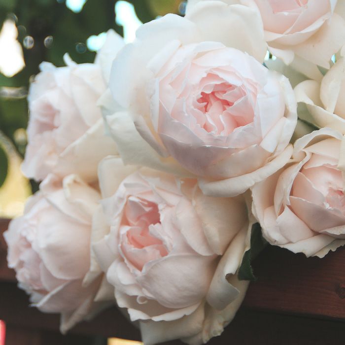 どこかレトロな雰囲気のあるモダンローズです。ごく淡いピンク のやさしげな色合いのディープカップ咲きの花には、上品なソープに似た香りがあります。樹勢はややコンパクトに生育し、鉢植え、庭植えのどちらにも扱いやすいバラです。