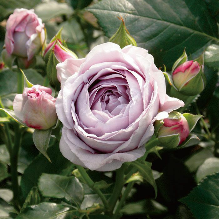 花名は平兼盛の和歌「しのぶれど 色に出にけり わが恋は」の中のしのぶ恋ごころをイメージ。一房に中大輪の花を4~5輪つけ、春は、花が株全体を覆い、たわわに咲きます。香りもよく、人気の品種です。