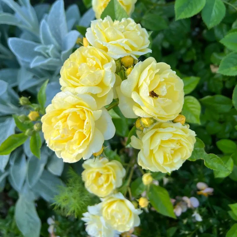 レモンイエローから淡いイエローの小さめの花が房で沢山咲き、コンパクトでこんもりとした樹形にまとまる。 耐病性強く繰り返し良く咲き、ナチュラルなガーデンにも良く合う。 名はフランス語で「小さな喜び」という意味。