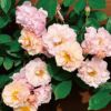 ピンクにアプリコットを含ませた、微妙なサーモンピンクの花びら。ほのかにムスクが香る小輪の八重咲きで、花は房になって咲きます。秋にも良く返り咲き、若干ライラックを帯びた微細な花色を見せてくれます。寒冷地では秋の枝葉の紅葉も楽しめます。枝は感じよく伸張し茂りやすいです。壁面や高めのフェンス、こぼれるように咲かせるつもりで、アーチにもいいでしょう。