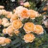 オレンジアプリコット色をした可愛らしいミニバラ系つるバラです。咲き始めはカップ咲きで、たくさんの蕾をつけるため、咲きだすと株を覆うように咲き誇ります。