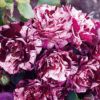 咲きはじめは、ほんのり紫がかった赤色と白の絞り。そして開くと刻々と紫色を帯びてゆき、思わず見惚れてしまいそうな、シックで印象的な色彩へかわる。房咲きになる丸弁カップ咲きで、生育がよく旺盛に伸びて半直立性シュラブ状になります。やや低めのオベリスク、フェンスなどに仕立てるのもよいでしょう。とてもよく香ります。