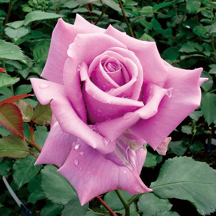 深みのある藤紫色。ぞくっとするほど印象的な色彩で、とても魅力的です。とくに雨降りの中に咲く花は美しく絶賛もの。爽やかかつ濃厚なブルー系の芳香があり、よく香ります。