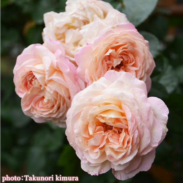 アプリコットを含むピンクの抱え咲きになる大輪咲きで、 ダマスクとミルラ、ティがとけあう個性的な 強い香りがあります。