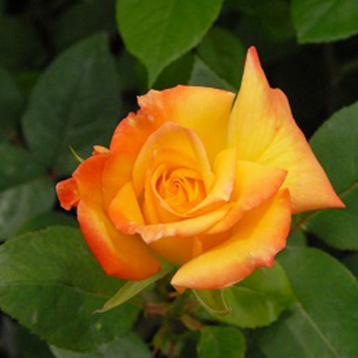 クリーム色にオレンジや朱赤が染まったような鮮やかな色彩。咲くとおおらかに広がり豪華な大輪咲きとなります。