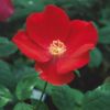 燃えるような赤色の四季咲きつるバラ。非常に生命力が高く、初心者でもあまり枯らすことはない品種です。上向きに良く伸び、枝が太く曲げにくいため、家の壁面などに誘引して育てるのが特に向きます。