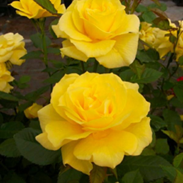 光を帯びたような中輪のレモンイエローの花が房咲きとなります。香りも素晴らしく、芳香のバラということで賞を獲得したこともあるほどです。各コンクールで沢山の賞を受賞し、黄色のフロリバンダ種の中で、コンパクトな樹形、房咲き、優しい花形、香り、と揃い、最良のバラと賞賛されています。別名:『サンスプライト (Sunsprite)』は「太陽の妖精」の意味。