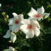 花芯の赤いしべがポイントとなる白色の一重咲きバラ。花つきがとてもよく、大房になってたくさんの花を咲かせます。草花と合わせやすいです。