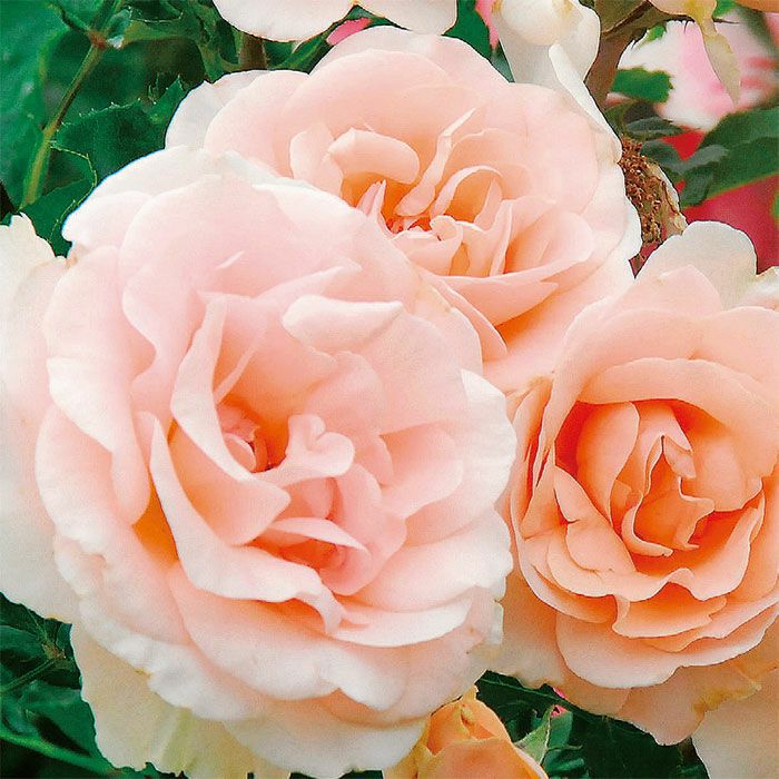 透明感のある淡いサーモンピンク色のやさしい花色。開くとかるく波打って、ひらひらと舞う蝶のよう。ルーズなオープンカップ咲きの花傷みしにくい弁質で、最後まで花を楽しめます。花色は低温ぎみで深みを増し、たいへん美しい花姿を見せます。ティ系の香りがあります。人気品種。木立性。