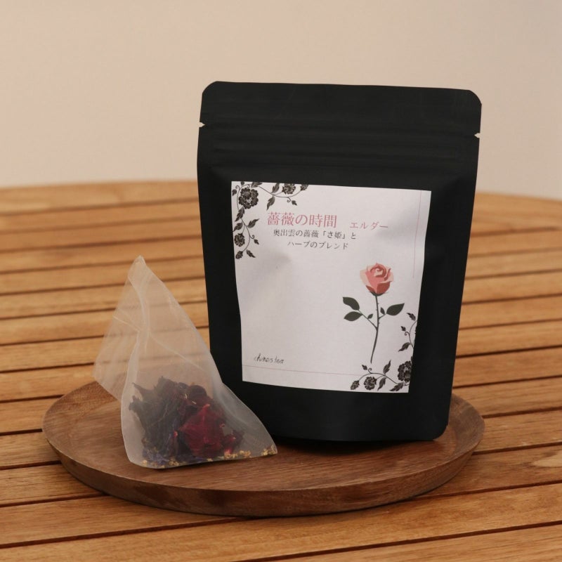 奥出雲で生産されている薔薇「さ姫」をたっぷりと贅沢に使い、ハーブと絶妙にブレンドされたこのお茶は、豊かな香りと優雅な味わいが特徴です。
